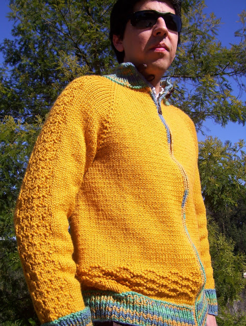 MODELO: Bee-sweet cardigan, hat and mittens
